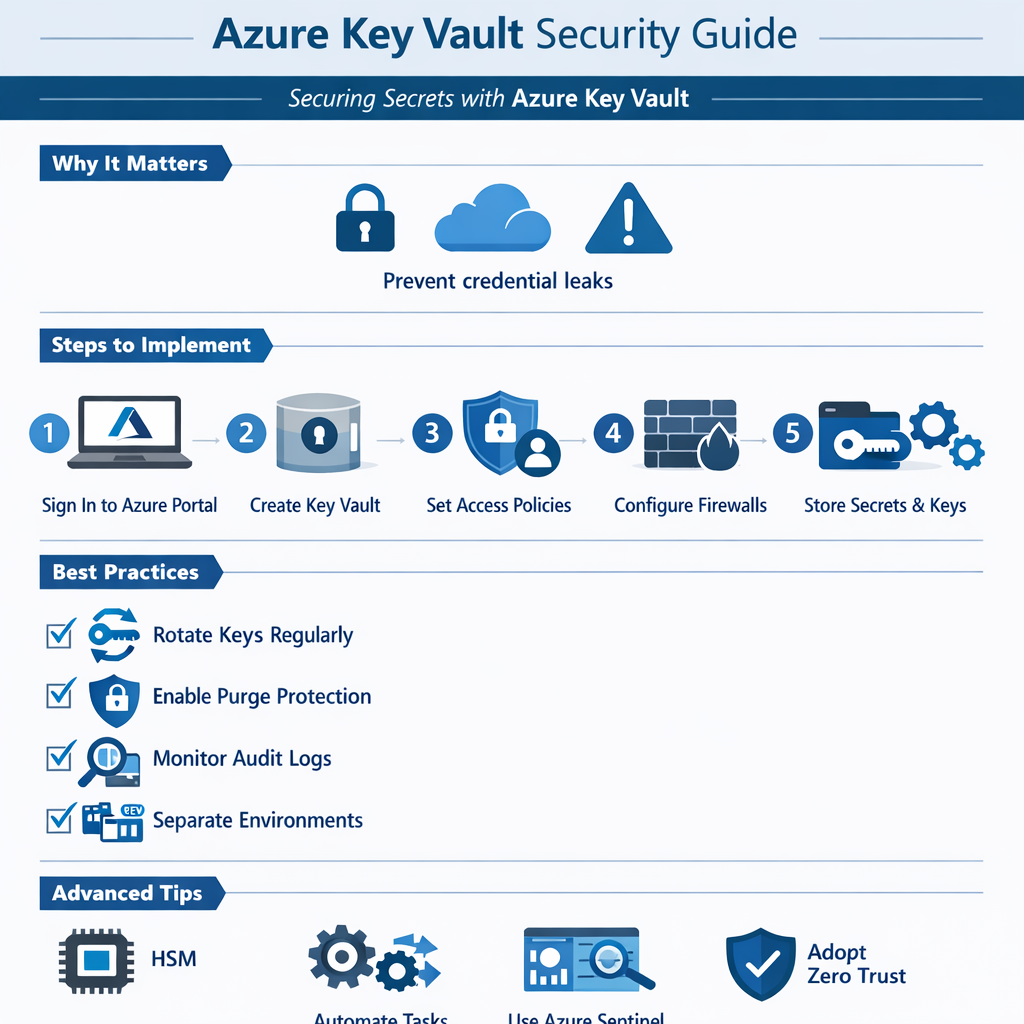 This article explains why protecting secrets is critical, how to deploy Key Vault securely, best practices for secret lifecycle management, and advanced strategies for high-security environments. By the end, you will understand how to integrate Key Vault across applications, pipelines, and Azure services while maintaining strong governance, auditability, and Zero Trust principles.
